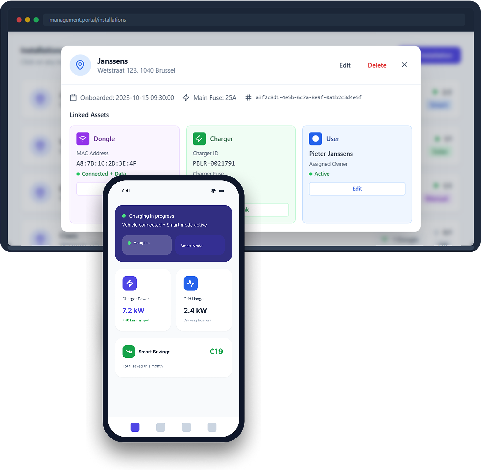 A centralized dashboard where data from the home, charger and user behaviour come together.